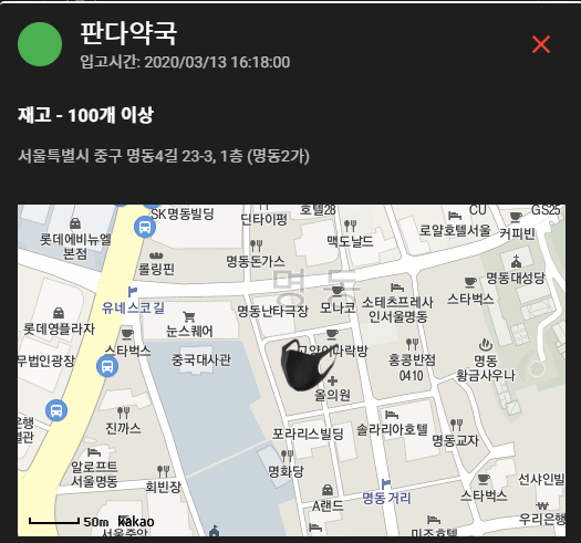 이제 리스트를 클릭하면 판매처 상세정보와 위/경도값을 가지고 지도에 표시해보려한다..