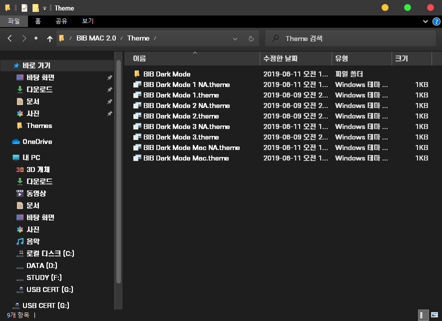 나는 BIB Dark Mode Mac NA.theme를 실행해보겠다.