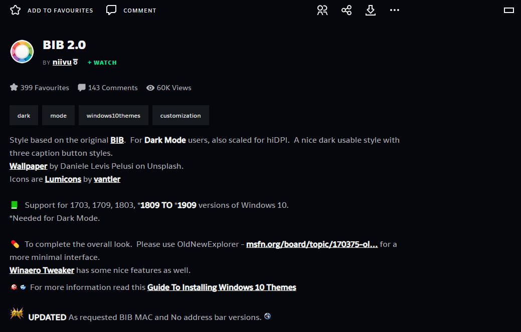 아래 쪽에보면 Guide To Installing Windows 10 Themes