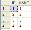 테이블을 만들고 ID 컬럼을 주키(Primary Key)로 정의한다. 그리고 데이터를 입력한다